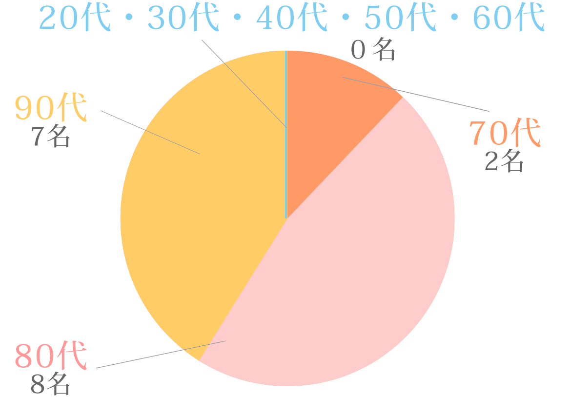 ご利用者様:平均年齢:92.6歳、平均介護度:2.4